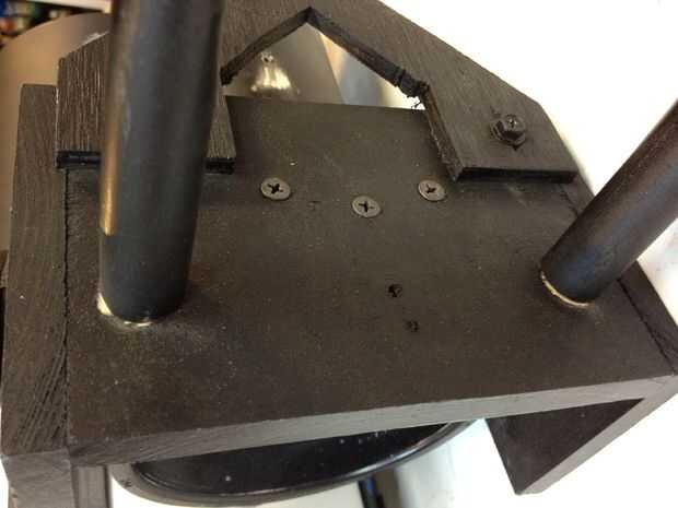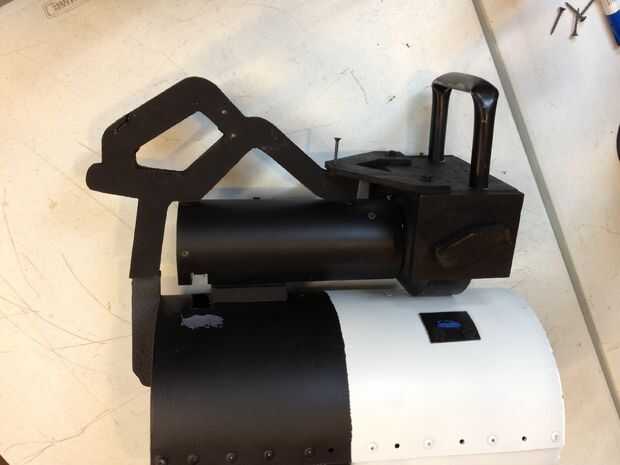 Para la parte posterior de la empuñadura trasera, sólo corrí un tornillo desde el interior del tubo principal en el mango. Esto llevó a cabo bastante bien, incluso con la espuma desde la parte posterior de la manija obtiene hacia abajo para equilibrar el arma. La mayor parte del peso es sostenida por el mango delantero.