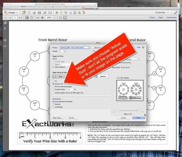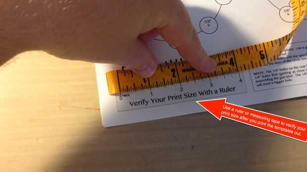 Hay una regla impresa en la parte inferior de cada página de la plantilla, así que usted puede usar una medición cinta o regla que ya tienes para comprobar que las plantillas impresión al 100%. Vale la doble esta comprobación antes de pegar en la madera y recorto.