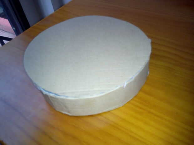 Empezaremos el tambor cargador usando cartón en vez del porexpan. Le daremos forma cilíndrica, de unos 160 mm de diámetro. Para ello cortar 2 círculos de cartón y una tira de unos 30 mm de ancho por unos 503 mm de ancho (pi de por de venta de multiplicar 160mm). Una vez unido uno de los círculos con la tira, ya sea por medio de cinta de embalar o adhesiva normal, rellenamos con trozos de porexpan para dar firmeza. Finalizamos este paso pegando la otra tapa circular.