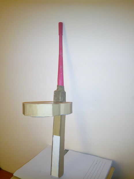 iv sólo mudó de casa y tenía una televisión vieja arial ahí que quería "reciclar"también tuve algunos corchos de otro im proyecto trabajando en y unas bujías de encendedores eléctricos...el resultado es una barra extensible que da una pequeña de