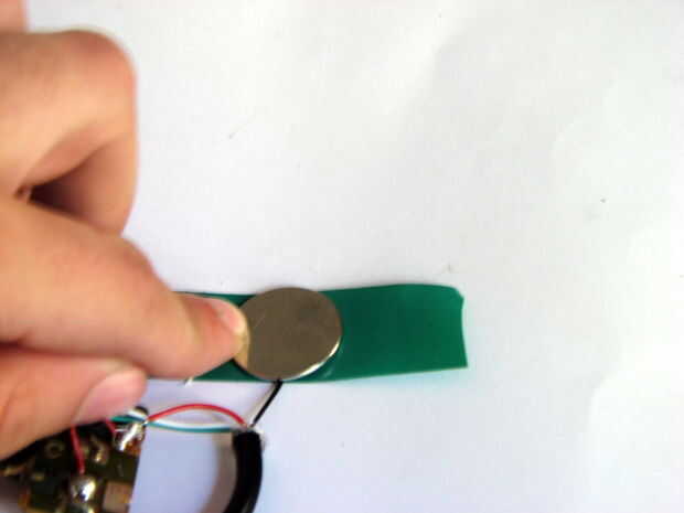 3) palo negro de alambre para el '-' lado de la batería, usando la cinta eléctrica.