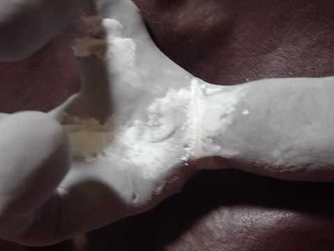 los dedos y un pulgar de cada mano y una muñeca delgada. Una vez creado ponga a un lado para secar.