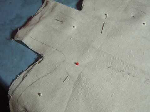 D. Coloque el patrón sobre la tela doblada (centro del cuerpo debe ser fijado a