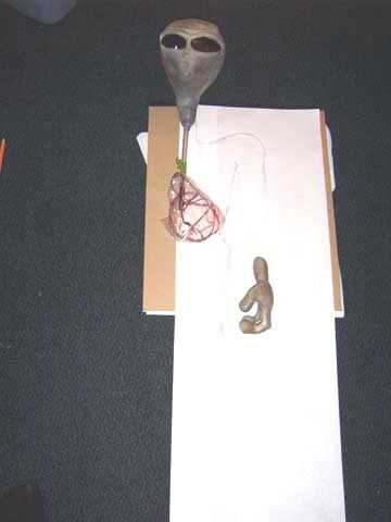 B. Coloque la cabeza en el papel y dibujar un contorno del cuerpo (sólo la mitad).