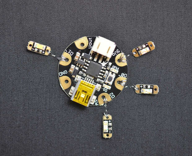 La costura de los cequis del LED es bastante simple en concepto. Comenzaremos con la izquierda. (A la izquierda concerniente a si se va a tener la chaqueta en)