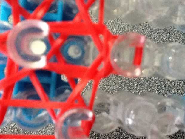 En la clavija que es la clavija 3 en la fila del medio, las gomas de la parte inferior dos y tire los overs de la parte superior. Lo mismo para todas las clavijas hasta que todos tengan las gomas levantadas sobre la parte superior. Empujar todo hacia abajo.