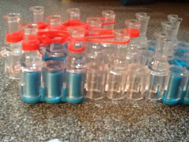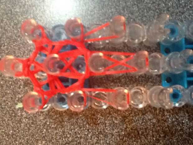 Después de que usted les empuja todo hacia abajo, es necesario ampliar a 8 clavijas. Para empezar, lazo de la banda superior que está en la clavija que se encuentra en la primera fila y la segunda clavija. Deslice la parte superior de su gancho. Luego tomar la última banda que está en la misma clavija y ponerlo en la clavija que está a la derecha de él. Vuelva a colocar la goma que está en la parte superior el gancho en la clavija que originalmente fue. En el otro lado, poner en su lugar la banda de goma superior arriba en su gancho, solo ponlo en la clavija a la derecha de él. Para la clavija del media, tome ambas gomas y ponerlos en la clavija a la derecha de él.