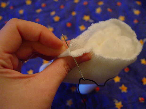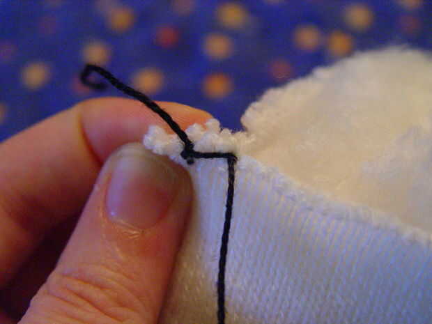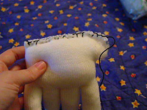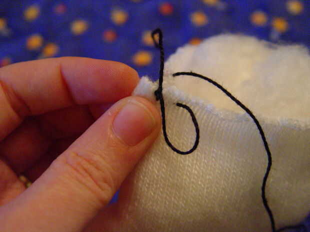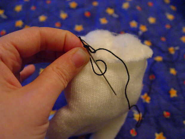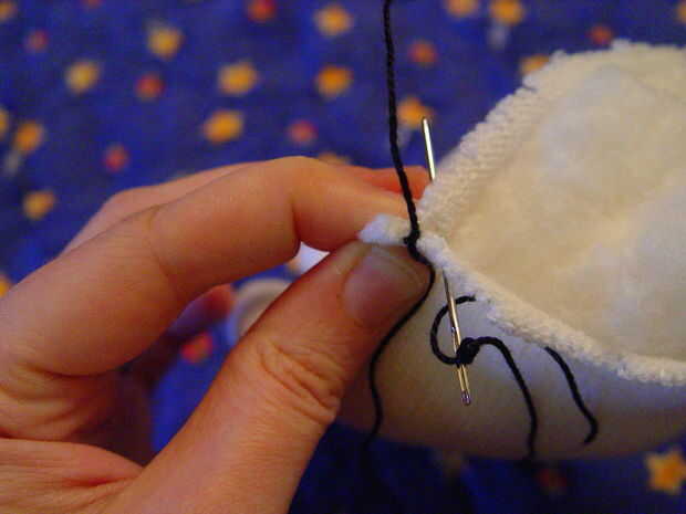 Si no sabes cómo puntada manta hay una guía ilustrada en las fotos. Una vez que se llega al final de la cabeza y puede seguir los puntos de sutura en la cara o ate y puntadas en algún otro lugar.