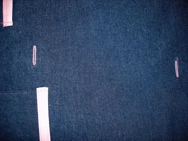 Ahora, midiendo hacia abajo desde la parte superior del material, cosa otro ojal en sobre la marca 19 18 1/2 pulgadas.