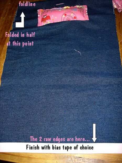 Doble longitud entera del dril de algodón por la mitad. Esto significa que ahora será 21 pulgadas de largo. Coloque el extremo doblado superior y los dos bordes crudos en la parte inferior. Finsh los dos bordes. (Opté por usar cinta amplia para un borde limpio)