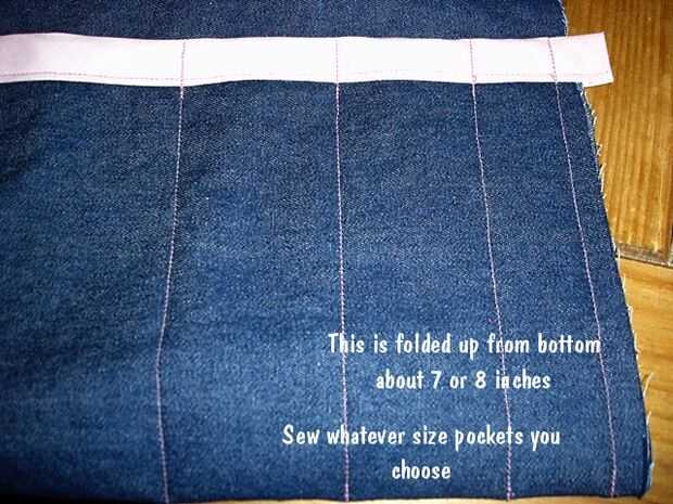 Coser las líneas para diversos bolsillos tamaño asegurándose de que sólo cose a través de la primera capa y no a través de la espalda... lo contrario será coser a través de esos bolsillos insertados al principio del proyecto.