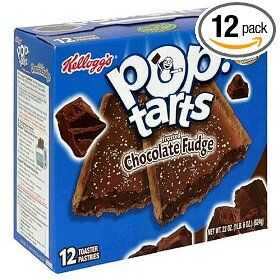 Salir de helado de Chocolate Fudge 2 Pop-tarts de la caja. No quiero decir dos paquetes, un paquete. Dos tartas. No microondas las tartas. Es mejor frío o temperatura ambiente. Desmoronarse por las Pop-tarts en trozos pequeños y colocarlas encima de las cosas. Ahora a mezclarlo todo.
