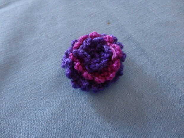 Tercera capa - Rnd 1: sc 6 en anillo mágico (6) con púrpura oscuro