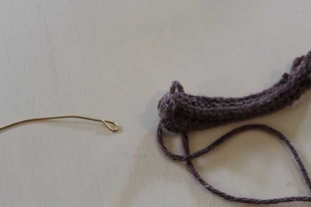 Ronda 5: ganchillo a lo largo de la cadena. 7 slst, 3 sc, 6 slst, 5 sc, 3 hdc (24 puntos)