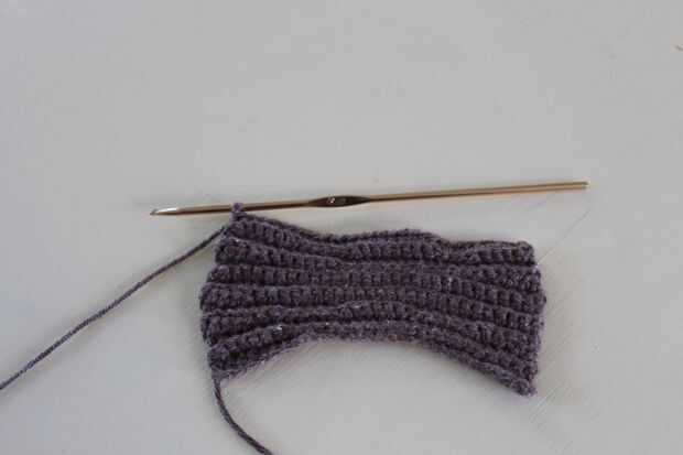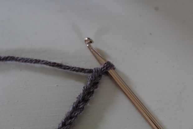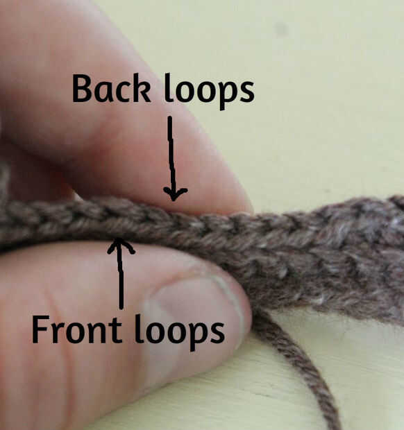 Con hilado marrón y gancho de ganchillo, ganchillo a través de lazos espaldas sólo.