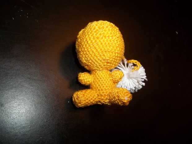 Usando la cola que quedaba en coser adhieren de la cabeza al cuerpo alineando los puntos de sutura. Repita esto para los brazos y las piernas. Sujete la cola. Coser el oído interno en el oído externo y colocar encima de la cabeza. Sujete usando la cola que quedaba en coser las alas al cuerpo. Utilizando una aguja y un hilo de crear una cara. Use un marcador para hacer las marcas poco swirly en la parte posterior de sus alas.