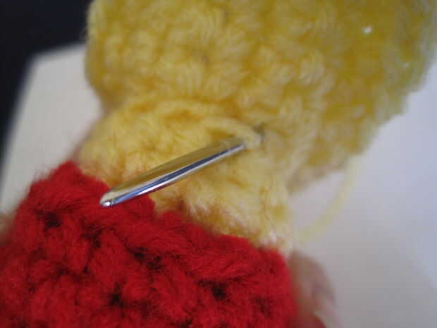 8. girar la esquina y SC 4, sc2tog, sc2tog, SC en el siguiente 5, 3 SC en ras del último pespunte (14)