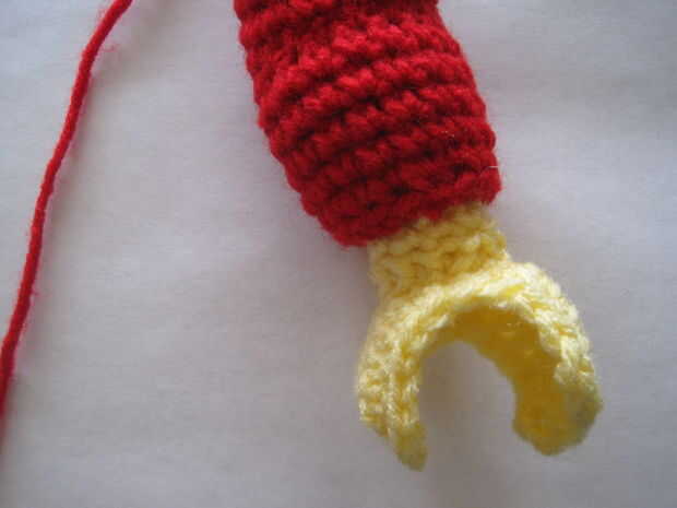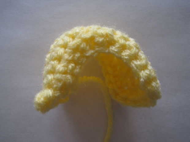 4. la cadena 1, vuelta y SC en 6, sc2tog, SC en el siguiente 5, 3 SC en ras del último pespunte (15)