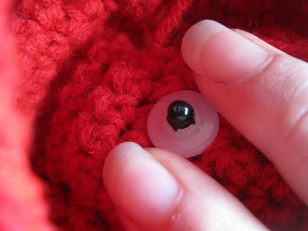 Dentro del cuerpo, fijar los ojos de seguridad con las arandelas de plástico forros que vinieron con los ojos.