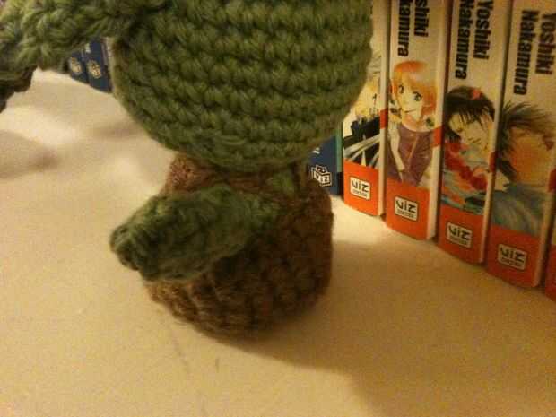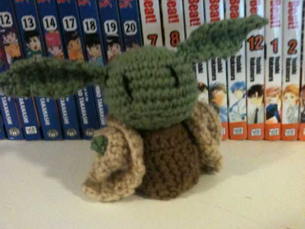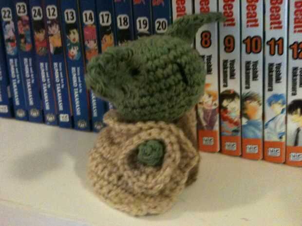 Se encuentra aproximadamente 5 pulgadas de alto y no pies debajo de esos trajes, jajaja! Yo le ganchillo a mano alzada por lo que le puedo dar el método exacto que utiliza, pero algunas ásperas instrucciones aquí para hacer tu propio Yoda: