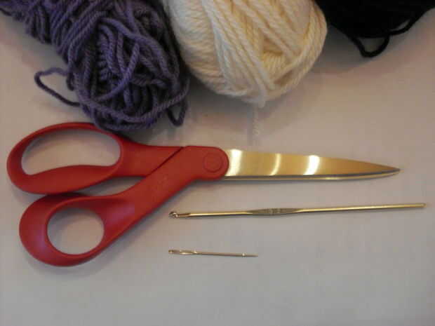 Algunos negro (u otro oscuro color) hilo para bordar las pupilas. Gancho de ganchillo-usé tamaño 3.0 pero usted puede usar cualquier tamaño funciona mejor con el hilado elegido. Aguja hilo tijeras relleno