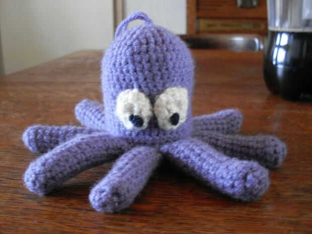Hilo - 1 bola de hilo de cualquier color que te gusta, usé púrpura.Un hilo blanco para los ojos.