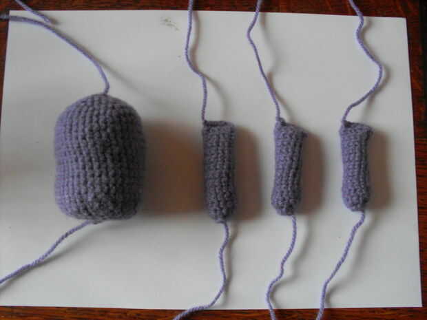 Fije apagado dejando un extremo largo. Puede utilizar este final para coser las piernas al cuerpo.