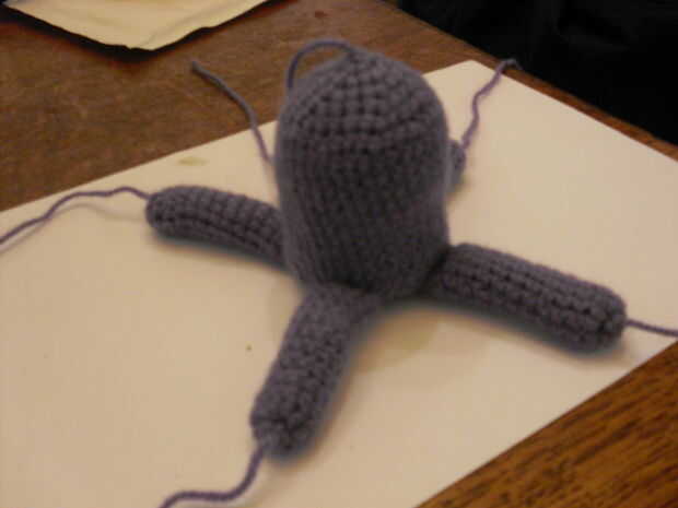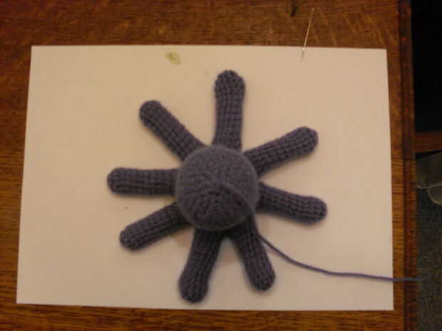 Coser el pulpo juntos. Para obtener las patas uniformemente espaciadas, empezar por colocar a cuatro patas frente a la otra. Así: 12:00, 6:00, 3:00, 9:00. Montar en los 4 restantes. Luego coser los ojos. Usted puede colocarlos donde tu quieras, pero tenga cuidado de no poner entonces centrado sobre una pierna. La pierna de lo contrario podría terminar más como un tronco. A continuación bordar a algunos alumnos. Usted puede intentar esto algunas veces encontrar el lugar adecuado, ya que (junto con los ojos ellos mismos) mucho definen expresión el pulpo.