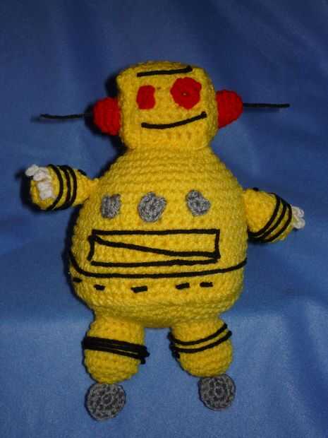 Esta fella no tan poco, es de once pulgadas de cabeza a pies y 18 pulgadas alrededor de la barriga del perno. Fue hecho usando nada más que hilo y relleno de poly-fil.