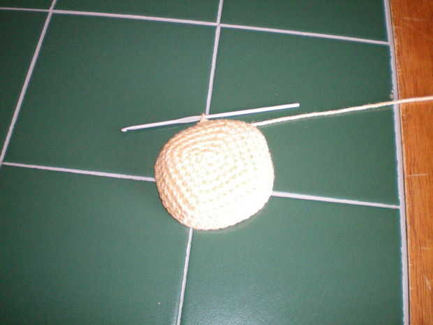 6. 4 sc, (3 sc en el siguiente st, 8 sc) 3 veces, 3 sc en el siguiente st, 4 SC. (44)