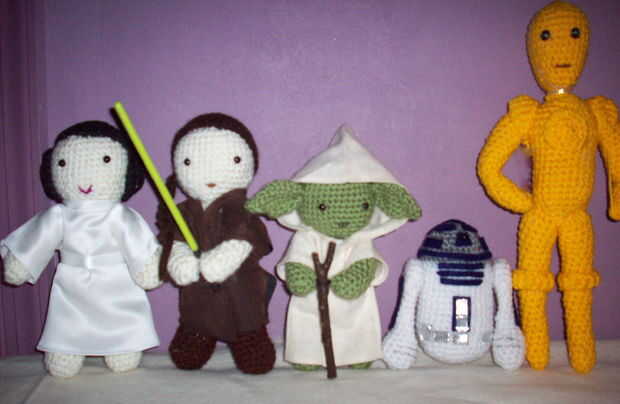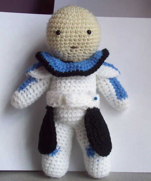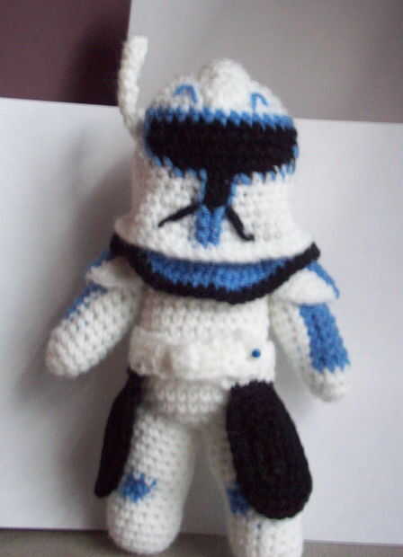hice Capitán Rex el año pasado para mi sobrino Ian ama Juegos de Star Wars. Usar fotos de internet como referencia, todo punto en rondas; boca es polémica con algunos hilados, ojos negro 6mm. También hice la princesa Leia, C-3PO, Anakin y R2D2 por Ian. No se encontró ningún oro hilado metálico C-3PO, tan sólo usado hilo amarillo brillante.