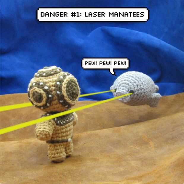 Patrón disponible aquí: http://www.etsy.com/listing/12901563/crochet-swordfish-and-manatee-pattern