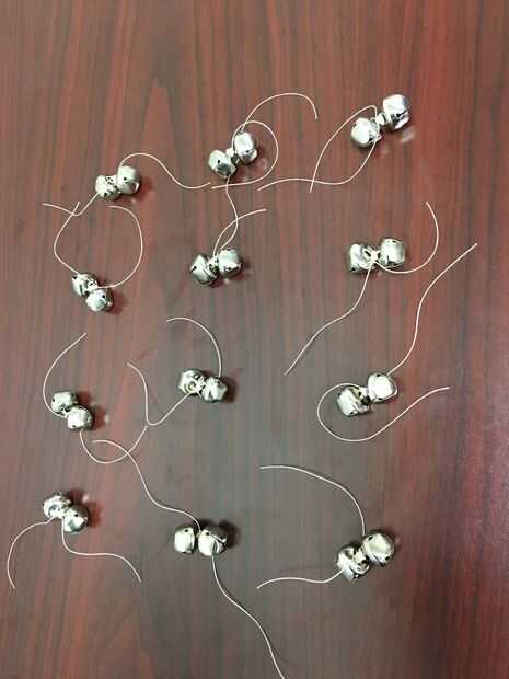 Atar 2 cascabeles con hilo fuerte. Repita con campanas restantes. Habrá 2 campanas en cada segmento.