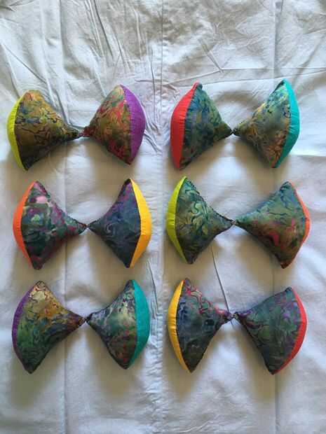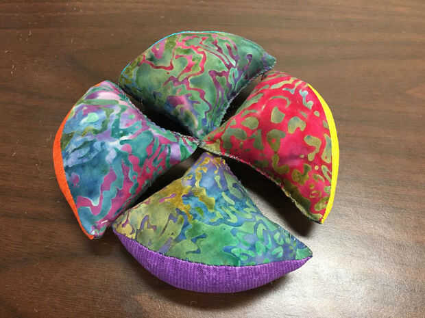 Coser dos pares juntos en el centro como se muestra. Ahora tendrás 3 secciones con 4 segmentos.