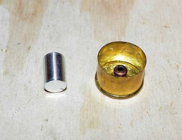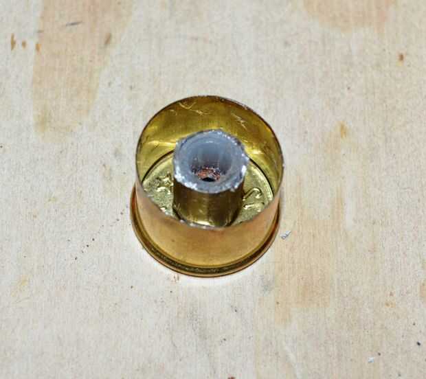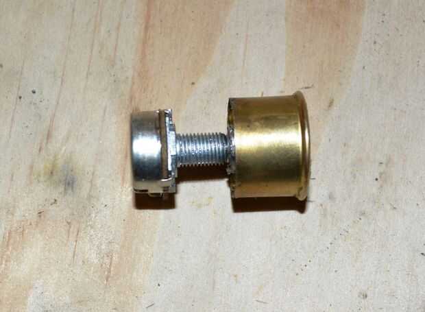 2. luego retire cualquier exceso de aluminio en la parte inferior de la perilla. Esta es la sección que se unirá a la olla en el amplificador. Si no eliminas este bit, a continuación, pegaremos la tapa de cáscara de la escopeta hacia fuera demasiado.