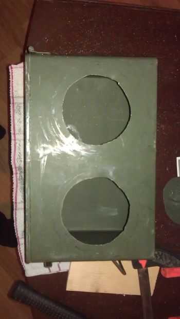 My version of systemf92s Fireworks Controller. 12 canales metidas en una caja de munición.50 caloría. He usado altavoces vinculante post en vez de terminales de resorte. La mayor parte del trabajo se puso en los agujeros de perforación y soldadura. L