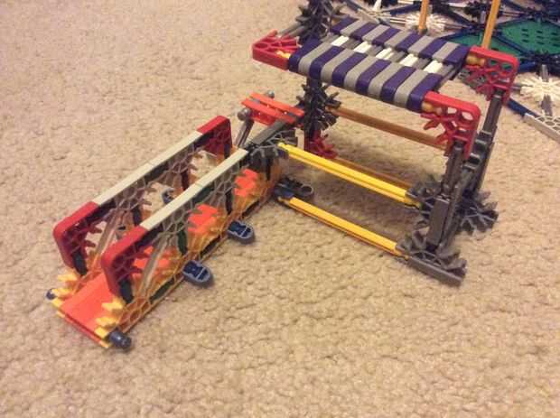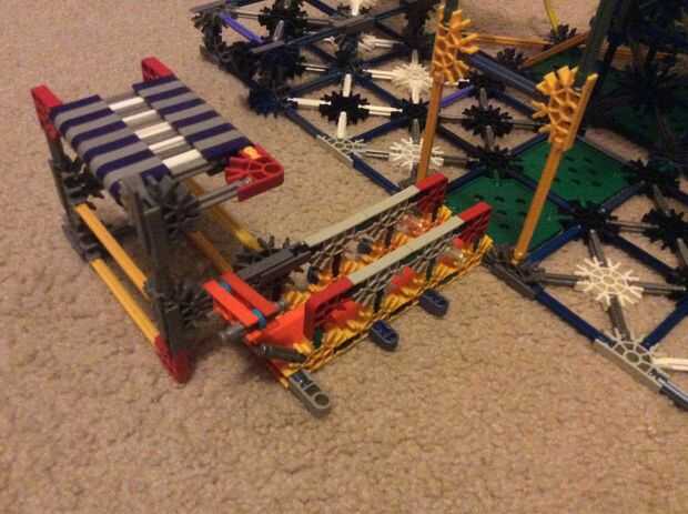 Este es el segundo de una serie de 3 ascensores nuevos en nuestra máquina de la bola de k'nex imposible.Esta elevación es bastante pequeña, lo que es útil para espacios pequeños donde tienes que hacer que la bola suba un poco. Ahora, sé que puedes es