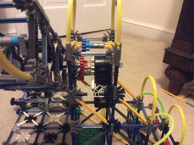 Este es el segundo de una serie de 3 ascensores nuevos en nuestra máquina de la bola de k'nex imposible.Esta elevación es bastante pequeña, lo que es útil para espacios pequeños donde tienes que hacer que la bola suba un poco. Ahora, sé que puedes es