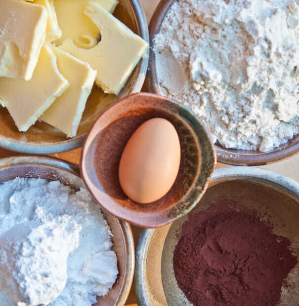 1/2 taza sin azúcar de cacao (usé Valhrona)