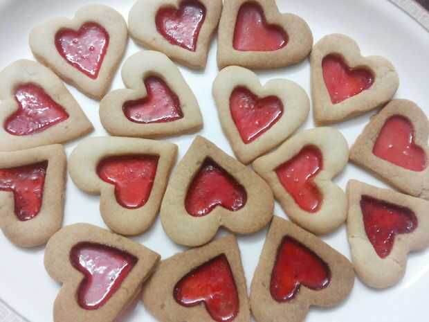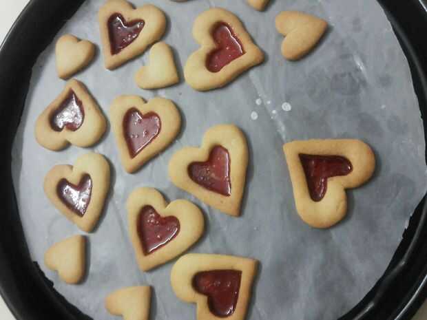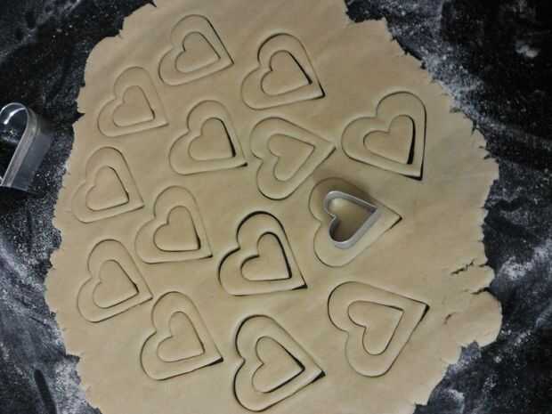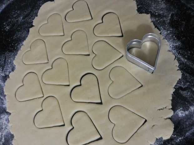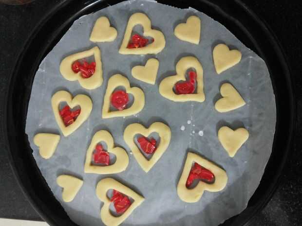 * para evitar mover las formas una vez cortan, cortan primero el corazón más grande entonces colocar en la bandeja para hornear y finalmente cortan el heart.* más pequeño