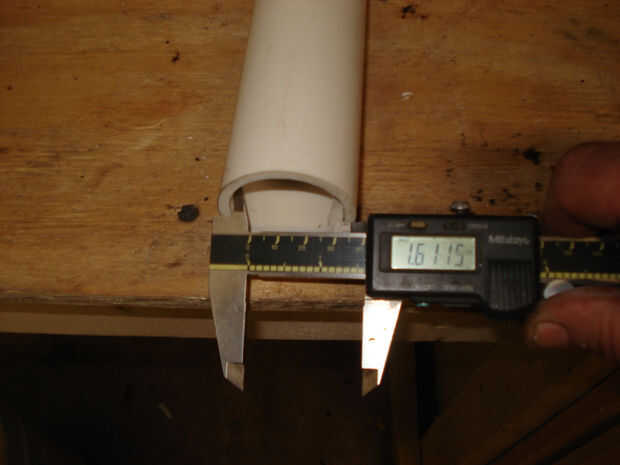 Step(2) el diámetro exterior de la amoladora fue 1,77 miles. El interior diámetro de la tubería de pvc de 2 pulgadas 1,61 miles.