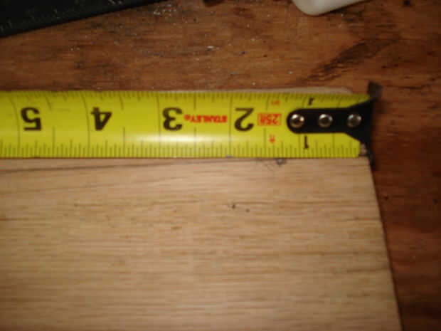 Step(3) medido sobre y abajo 1 1/4 para marcar para mi primer agujero con 2''. entonces miden sobre 3/4 '' desde el borde del primer agujero luego mide 1 1/4 para el segundo agujero repetido para el tercer y último hoyo.