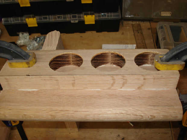 Paso (1) que tenía a la izquierda sobre pieza de roble rojo Junta puesta alrededor por lo solía para hacer la cuna.