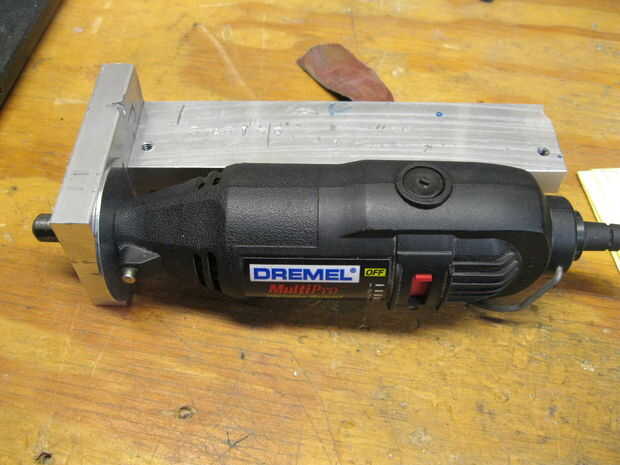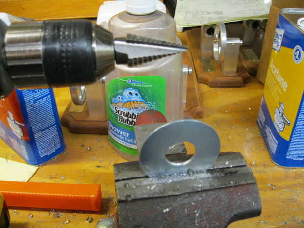 Si el ID del apilado de las arandelas es 3/4" usan como es. Si el ID es menos de 3/4" tendrán que ampliarse. La arandela de fijación de un tornillo de banco y utilizar un poco de paso (ilustrado) o un tambor de moliendo en una Dremel para agrandar el orificio de 3/4". Una vez que todas las arandelas se agrandan quitar las rebabas del agujero, apilarlos en la Dremel, y prueba de colocarlo otra vez. Sigamos con la mano la parte posterior de la Dremel es ante el bloque de montaje en. Si no ajusta la pila de lavadora según sea necesario.