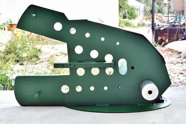 En primer lugar, tenemos una brida ovalada de 5 mm de espesor y se trata de cómo hicimos la base de nuestra máquina. Luego, hemos diseñado y cortar la forma de la lijadora de banda de una placa metálica de 5 mm de espesor y soldados verticalmente en la base oval.