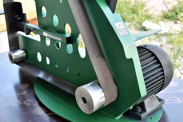 Elegir un motor muy potente de 2hp y 3000 rpm, habían ajustado a nuestra base en 90 grados con el marco de la lijadora de banda. En el eje del motor, colocamos una rueda de aluminio que hemos hecho en el torno con un diámetro de 8 cm y se utiliza para girar la banda de la lija.