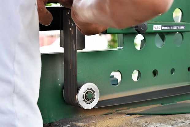 Luego, creamos una base, en el cual se colocan los objetos que se frotó con el fin de garantizar nuestra estabilidad y seguridad al utilizarla. También, una base en el lado de nuestra máquina, nos da la oportunidad de utilizar varios componentes dependiendo de la obra o el resultado que queremos lograr. La correa usada, tiene 72'' longitud y anchura de 2.