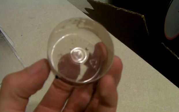 una vez usted encontrar tu corte recipiente aproximadamente 1" desde el fondo del recipiente. que va a ser la base del contenedor y ahora necesita perforar un pequeño agujero en la parte inferior de la botella. Esto es donde descansará tu motor.
