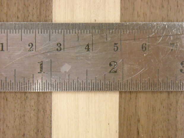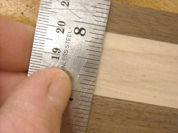 Utilizar 2 métodos para pegamento arriba... tienen 9 tiras de contraste alternando madera de rasgar por la mitad de la pieza central con una sierra o simplemente pegar 4 piezas... 2 bombillas, 2 piezas oscuras. El primer método es bueno si usted quiere hacer un número de tablas y utiliza un Hanon a todo volumen. Normalmente hago 3 o 4 extra para los niños que tratan de lo mejor pero no tiene éxito... esto les permite hacer las secciones de diseño y metal sin desanimarse demasiado.