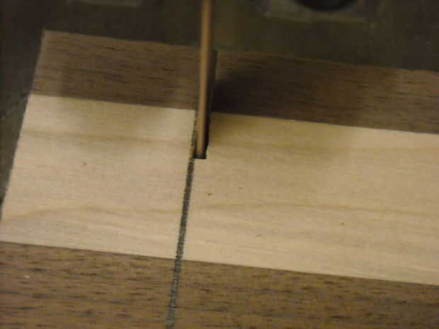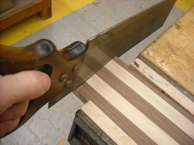 Extremo de una plaza y backsaw o sierra de cinta a lo largo de la línea. Es realmente importante de esta línea es muy cuadrada... el resto de las líneas de construcción de éste.